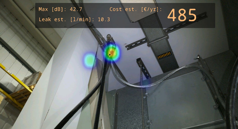The final stop was the facilities maintenance workshop where the compressed air feed was obscured from view, above suspended ceiling tiles where 2 leaks were detected, again silent and undetectable without ultrasonic imaging equipment.