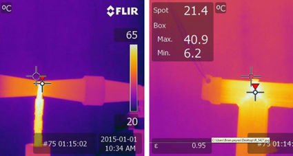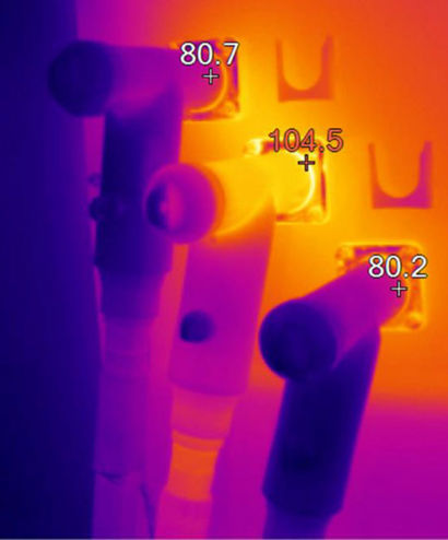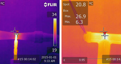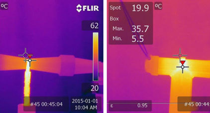 When visualized with a thermal camera, anomalies in the dead break elbows clearly show as heat losses.