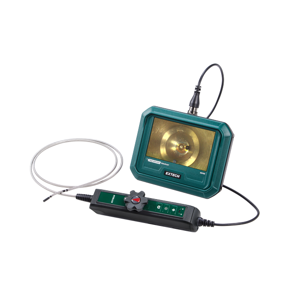 The Extech HDV700 is a versatile and lightweight professional videoscope that is designed for inspections in locations that are difficult or unsafe to access. With one or more of the eight waterproof (IP67) camera probes*, you can use the HDV700 for condition monitoring in manufacturing, HVAC/R, plumbing, building, and automotive applications. A range of small diameter and articulating camera probes are available to give you clear visibility of components from the 5-inch color touchscreen display. Easily maneuver the narrow probes into small openings without disassembling equipment. The HDV700 also features multiple data recording options so you can easily create reports at the job site by transferring images and videos to your laptop.