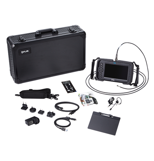 With one or more of the VS80 videoscope probes, you can perform a wide range of inspections, including industrial equipment maintenance, HVAC/R, building, and automotive applications. Easily maneuver the narrow camera probes into small openings and tight spaces, and view sharp, vivid images and videos from the large, 7-inch touchscreen display. Using the Flir Meterlink® Mobile app from a mobile device, you can view live images and video from the VS80, download saved files, and share them easily with customers or colleagues.