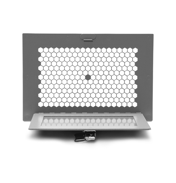 Optic Reinforced Grill Material IRW-PC 6 inch, IRW-PC 12 inch, IRW-PC 24 inch: Aluminum Reinforcing Grill (IP22 / IP2x Standard) || IRW-PS Stainless 12 inch, IRW-PS Stainless 24 inch: Stainless Steel Reinforcing Grill (IP22 / IP2x Standard)