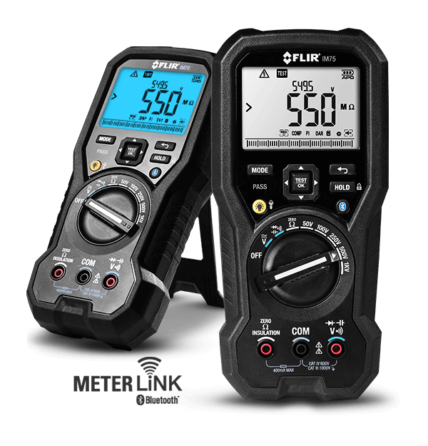 El FLIR IM75 es un comprobador de aislamiento de mano de primer nivel y un multímetro digital multifunción avanzado para profesionales de instalación, solución de problemas y mantenimiento. El IM75 incluye varios modos de aislamiento especializado, entre los que se encuentran: Índice de polarización, absorción dieléctrica y resistencia con toma de tierra. Las pruebas de aislamiento pueden realizarse de manera instantánea, continua y durante un período controlado para realizar una evaluación en profundidad. El medidor incluye METERLiNK® para integrar mediciones eléctricas en termografías capturadas por cámaras de infrarrojos FLIR, y funcionalidad Bluetooth® para ver las lecturas en tiempo real de forma remota.