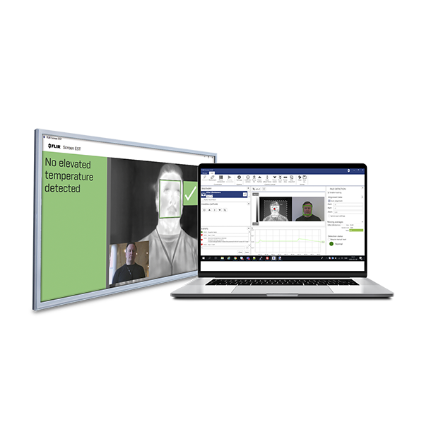 FLIR Screen-EST™ est un logiciel de bureau efficace et précis qui permet d'analyser la température corporelle dans les zones à forte affluence. Une fois connecté à une caméra thermique FLIR, il détecte automatiquement les personnes qui pénètrent dans le champ de vision de la caméra et, en quelques secondes, localise un point chaud et mesure la température corporelle. Si la température mesurée est supérieure à la moyenne spécifiée, une alarme le signale à l'opérateur qui peut immédiatement décider si une deuxième analyse avec un dispositif médical est nécessaire. FLIR Screen-EST peut être configuré en quelques minutes afin que les opérateurs puissent analyser les personnes à une distance sûre et ralentir la propagation du virus au sein du personnel.