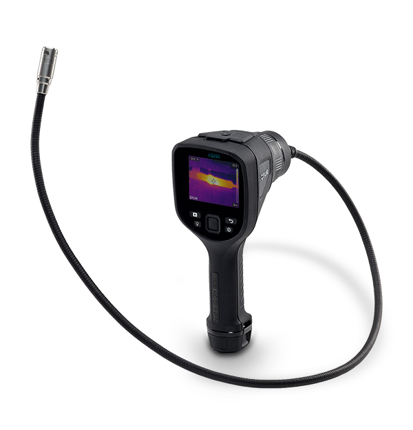 The FLIR VS290 is an industrial thermal and visual videoscope system designed to help professionals quickly and safely find hidden faults and dangers in difficult-to-access locations. Featuring a 160 × 120 true thermal imager and FLIR MSX® (VSC-IR32 and VSC-IR33 probes), VS290 videoscopes give users the power to see and measure invisible hot spots before catastrophic equipment failures can occur. The small, sleek tips allow for easy inspection through tight or confined openings, improving productivity and reducing diagnostic time. The 2-meter side-viewing probe options are CAT IV 600V safety rated—perfect for underground electrical vault inspections. The 1-meter forward-viewing probe is a practical fit for general purpose equipment and building thermal scans. All are versatile tools for the most demanding environments in utility, manufacturing, and building maintenance applications.