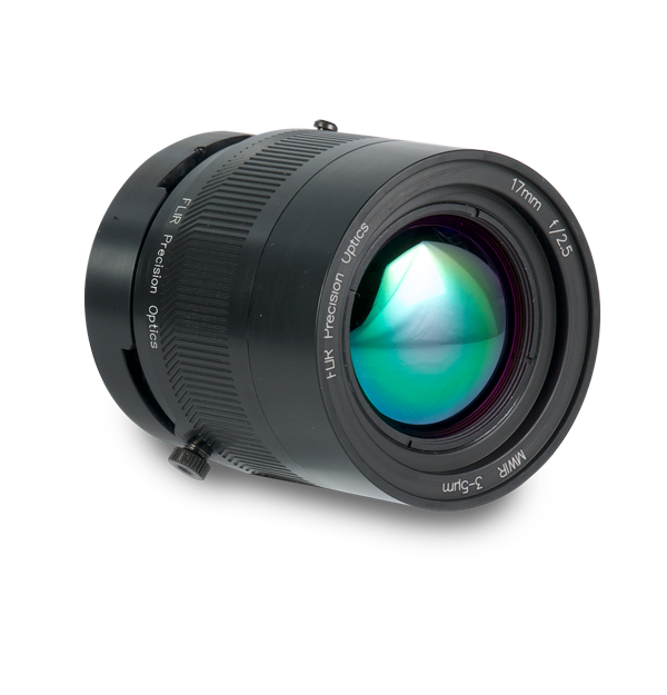 A67xx MWIR、A85xx MWIR、X68xx MWIR、X69xx MWIR、X85xx MWIRを含むFLIR R&D/Scienceカメラ用の17mm、3~5µm、f/2.5中波長赤外線FPO手動バヨネットレンズ。