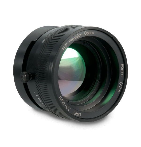 50 mm, 7.5-12 µm, f/2.5 LWIR FPO Manual Bayonet Lens for FLIR R&D/Science cameras, including A67xx SLS, A85xx SLS, X69xx SLS, and X85xx SLS.