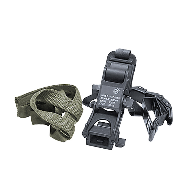 The PASGT Helmet Mount Assembly allows front-mounted, hands-free use of a night vision system when attached to Personnel Armor System for Ground Troops (PASGT) Helmets. Standard fit adjustments and flip up/down functionality give the user complete control over their set-up.
