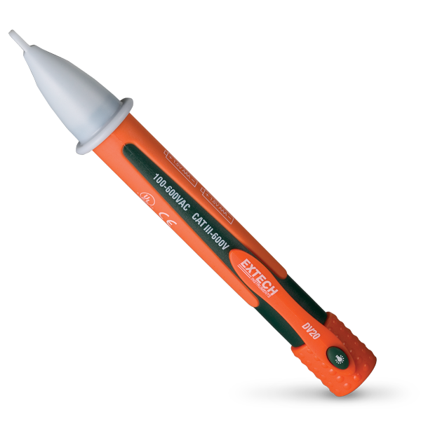 Extech DV20はポケットサイズの非接触型検電器で、試験前の活線の電圧を迅速に確認できるように設計されています。この検電器は、暗い場所を照らすLEDフラッシュライトと頑丈な二重成形ハウジングを備え、CAT III-600V安全定格に適合しています。50/60Hz回路用に設計されています。単4電池2本とユーザーガイドが同梱されています。