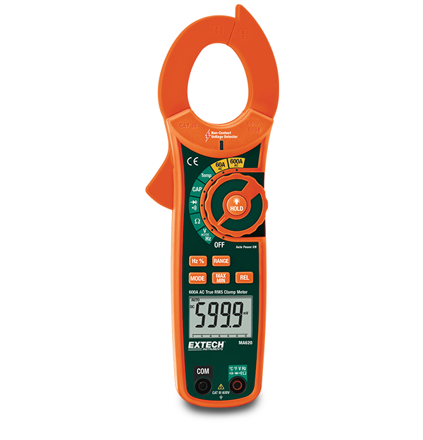 Extech MA620 True RMSは、自動レンジACクランプメーターで、プラントメンテナンスの技師、電気トラブルシューター、DIY愛好者に高性能で優れた価値のある製品を提供します。高度なマルチメーターおよび電流測定機能のホストに加えて、非接触(NCV)電圧検出器も内蔵されています。自動または手動レンジモードを選択できます。測定機能は、電圧、抵抗、静電容量、周波数、デューティサイクル、ダイオード、導通テストなど、非侵襲的な電流プローブ測定に加え、あらゆる種類のトラブルシューティングに対応します。付属のタイプKビーズワイヤープローブで温度も測定できます。テストリード、汎用タイプKビーズワイヤー温度プローブ、9Vバッテリー、キャリーケースが付属しています。