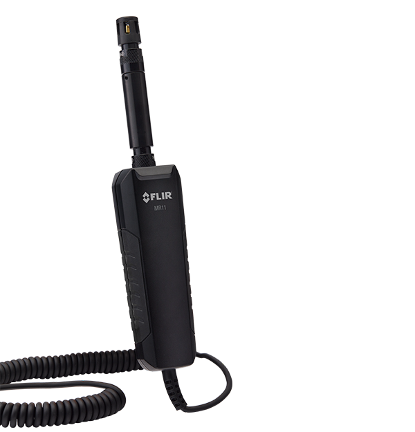 FLIR MR11は人間工学に基づいた温度および湿度センサーで、FLIR MR176やFLIR MR77水分計と一緒に使用するように設計されています。1台のセンサーを様々な場所に持ち運び順応するまで待機する代わりに、除湿器ごとにMR11センサーを配備することで、測定時間を短縮できます。