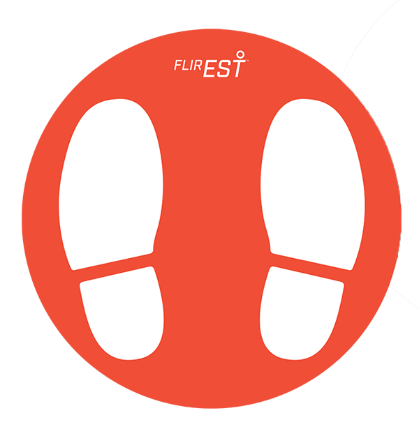 Orange queue marker floor sticker for skin temperature screening stations, 400 mm (15.8 in) diameter.