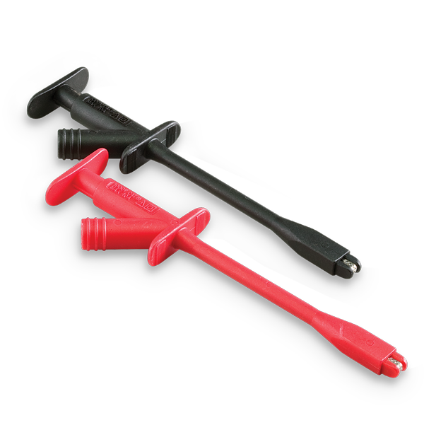 Extech TL740工業用プランジャー式テストクリップセットには、スチールジョー付きスプリング式クリップが付属しています。ジョーの開口部は15mm、全長は155mmです。このテストクリップセットの定格は、1000V、10A、CAT III-1000Vです。