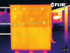 ダミーの壁はソーラーサイクルの充電中と放電中に監視と解析が実施され、熱画像が定期的に記録および保存されました。 アクティブサーモグラフィとともに、太陽放射によって充電が行われ、試験片の表面に影響を与えます。 放電段階では、エネルギーを蓄積した構造が日陰に入った際にエネルギーを放出する様子が監視されます。 この試験において、ANITはFLIR T640サーモグラフィカメラを選択し、T640こそがこの作業に最適と実証されました。
