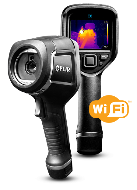 The FLIR E8 with WiFi offers affordable, high-resolution thermal imaging with the added advantage of wireless connectivity. Find hidden electrical faults, mechanical issues, and sources of energy loss thanks to the E8's crisp 76,800 (320 × 240) pixel infrared resolution and MSX® image enhancements. Then, streamline your workload by uploading and sharing images and data over WiFi to the FLIR Tools mobile app.