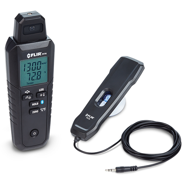 The FLIR PV78 is designed for solar site surveys, panel installation, and maintenance of photovoltaic systems. It allows for instant measurements to determine solar (irradiance in watts per square meter) as required by IEC 62446-1 Electrical Safety of PV installations standard. You can measure temperature by placing the meter directly on the panel or by connecting an external probe for continuous measurements. The device also includes a compass to find the predominant direction and a tilt function to verify the inclination of a roof or panel. With FLIR METERLiNK® Bluetooth® technology, you can wirelessly connect to the METERLiNK app on mobile devices, enabling instantaneous documentation, reporting, and sharing of results from the field.