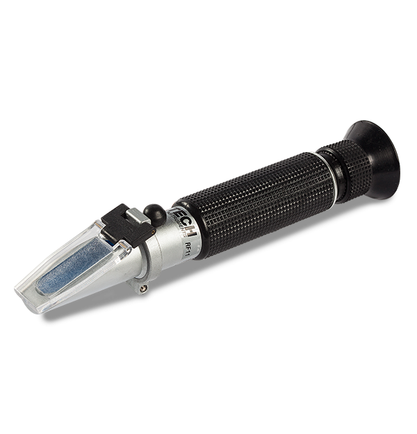The Extech RF11 is a refractometer that measures the concentration of industrial fluids and sugar in fruit juice. It is both compact and easy to operate. The RF11 requires only 2 or 3 drops of solution and provides accurate and repeatable measurements on an easy to read scale. Prism and lens with a simple focus adjustment and automatic temperature compensation from 10°C to 30°C (50°F to 86°F). Comes complete with case, calibration screwdriver, plastic pipette and calibration solution.