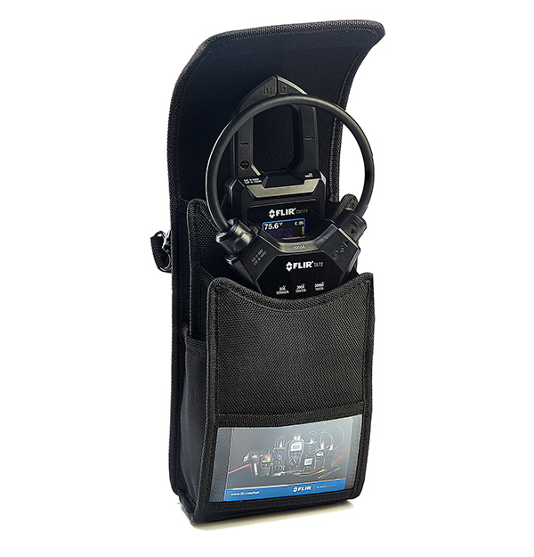 The FLIR TA15 is a universal, multi-compartment soft-sided case designed to protect and carry your FLIR clamp meter, flex clamp accessory, test leads, or any other tool you need on the job. It is recommended for use with any FLIR clamp meter and the FLIR Universal Flex Current Probe Accessory (TA72 or TA74). Two large instrument compartments. Removable hand strap. Quick-release belt clip. Convenient magnetic bag closure. Label/luggage tag window. Two durable side pockets (mesh/neoprene). 1-year warranty.