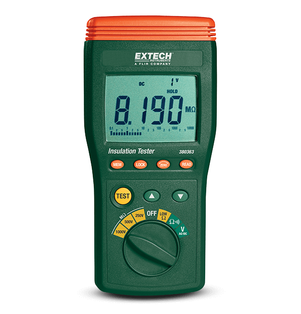 이 Extech 절연 테스터는 250V, 500V 및 1000V 테스트 전압으로 최대 10GΩ를 측정합니다. 다음과 같은 기능이 있습니다. 연결을 테스트용 Lo-Ohms, 추세를 보여주는 아날로그 막대 그래프, 999V까지의 AC/DC 전압 측정, 수동 데이터 기록/리콜 기능(9세트), 활성 회로 디스플레이 경고 및 신호음. 모터, 변압기 권선, 측정 기기 및 가전제품을 테스트, 전선 및 케이블 어셈블리의 습도를 확인, 새로운 배선 설치의 안전성 평가, 차단기, 릴레이 및 스위치의 탄소 추적을 확인하는 데 사용할 수 있습니다. Extech 절연 테스터는 높은 감도를 제공하여 저저항 모터 권선의 신뢰할 수 있는 모니터링을 보장합니다. 휴대용 케이스, 테스트 리드 및 AA 배터리 6개가 포함되어 있습니다.