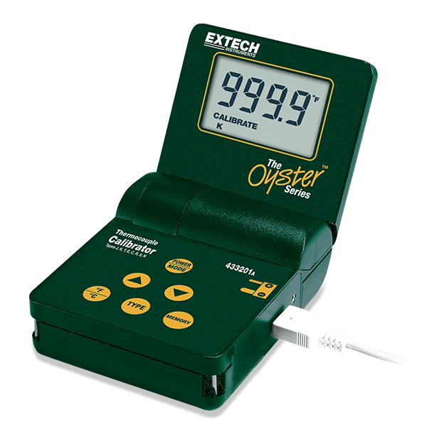 Extech 433201 멀티 타입 보정기 온도계는 8가지 유형의 열전대를 소싱하고 측정합니다. J, K, T, E, C, R, S 및 N입니다. 내장된 열전대 테이블에 따라 mV 또는 °C/°F 단위로 출력을 표시합니다. 5개의 저장된 보정 값을 통해 빠른 보정이 가능합니다. 플립업 디스플레이가 있는 오이스터 케이스는 핸드헬드 또는 벤치탑 용도에 적합합니다. 9V 충전식 배터리, K형 열전대 케이블, 구리 보정 케이블 및 115V AC 어댑터/충전기가 제공됩니다.