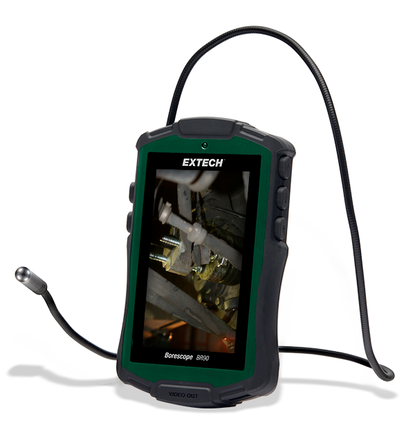 Extech BR90은 손바닥 크기의 방수 등급(IP67) 8mm 카메라 프로브로, 77cm의 유연한 구스넥 케이블로 구성된 모양을 유지합니다. 내시경에는 카메라 프로브를 쉽게 보관할 수 있는 고유한 수납 공간이 있습니다. 640 x 480픽셀 해상도, 2배 디지털 줌 및 밝은 내장형 LED 램프는 대형 10.9cm 컬러 LCD 디스플레이를 통해 보이는 물체를 명확하게 투사할 수 있습니다. 모니터는 밝기 조절이 가능하며, 180° 이미지 회전, 미러 플립 기능 및 비디오 출력이 있습니다. 합리적인 가격의 완전 로드형 검사 카메라입니다.