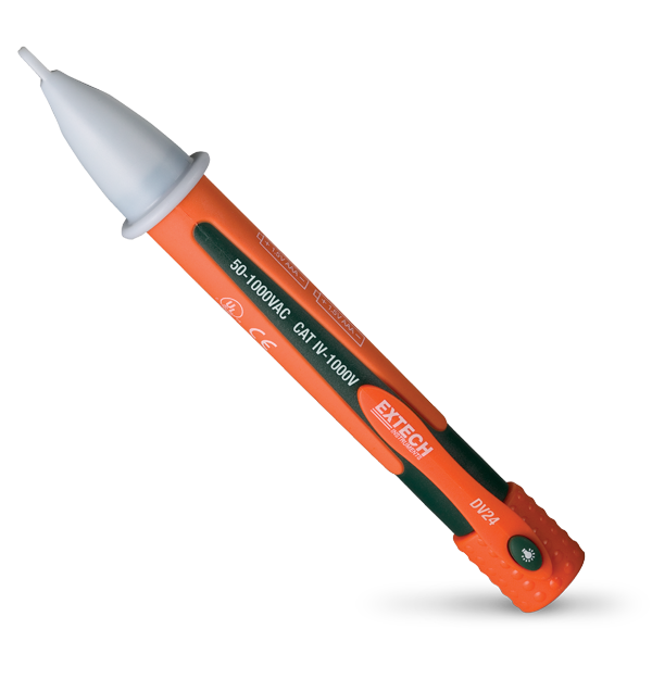 DV24로 테스트하기 전에 전류가 흐르는 와이어가 있는지 신속하게 확인하십시오. 콘센트 또는 전선 절연 테스트에 적합한 이 AC 전압 감지기/플래시라이트는 50 ~ 1000V(50/60Hz)의 AC 전압을 비접촉식으로 감지합니다. 빨간색 LED는 전압의 존재를 나타냅니다. CAT IV-1000V 안전 등급. AAA 배터리 2개와 사용 설명서가 함께 제공됩니다.