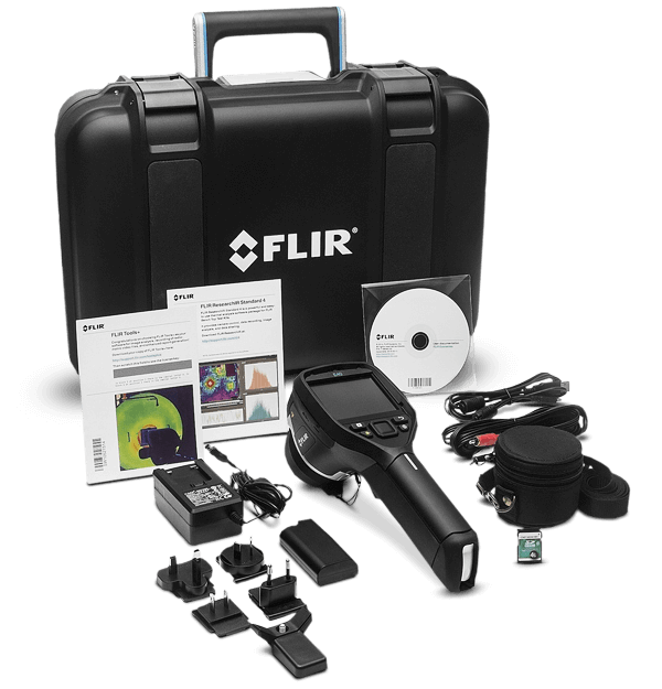 The FLIR E40sc Benchtop Test Kit is the perfect choice when you need a flexible, handheld camera for engineering or science lab use. The E40sc offers longwave imaging with thousands of temperature measurement points across your target, for more reliable and comprehensive results than with a thermocouple or spot pyrometer. Together with the kit’s lens choices and analysis software, the E40sc kit is the most dependable temperature measurement solution for industrial and R&D labs.