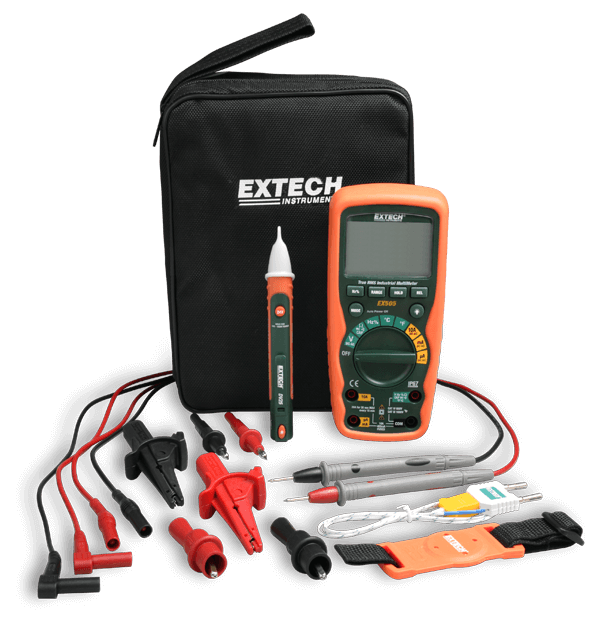 EX505-K는 헤비 듀티 산업용 멀티미터 키트입니다. 키트에는 Extech의 모델 EX505, DV25 및 TL808 제품이 포함되어 있습니다. 키트에는 안정적인 측정기와 산업용 전기 문제 해결에 필요한 모든 액세서리가 들어 있습니다. 제품은 부드러운 휴대용 케이스에 담겨 제공되며 필요 시 측정기를 보호하고 정리할 수 있습니다.