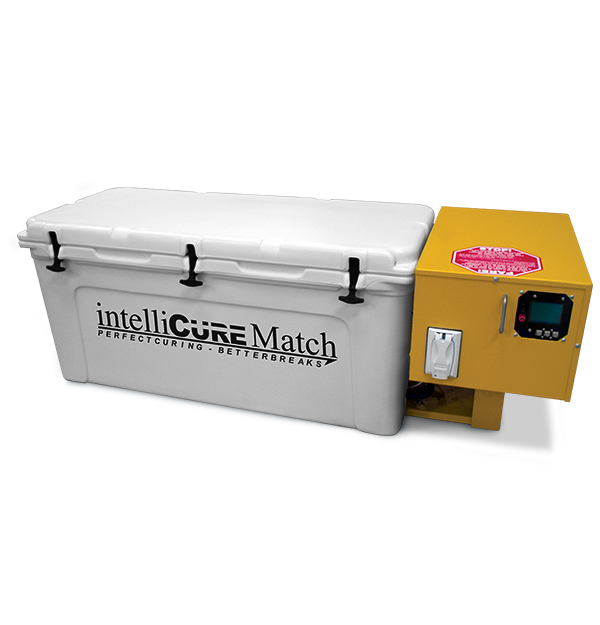 The established standard for concrete cylinder curing, the intelliCure family of products just got even better with the intelliCure Match curing system. Now you can monitor the curing of your critical concrete structures by replicating the real-time, in-place conditions that exist on your site. The specialized sensor transmits the actual temperature conditions of your pour to the intelliCure Match curing box, which matches the water temperature conditions precisely so your breaks will accurately represent what’s going on with your in-place concrete.
