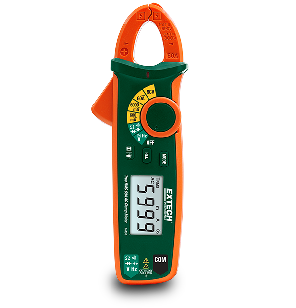 Extech MA61은 NCV 전압 감지기와 전체 과부하 보호 기능을 갖춘 AC 전류 클램프입니다. 수동 범위 지정 클램프 미터는 3가지 전류 범위와 최대 600V의 AC/DC 전압을 제공합니다. 6000mA 범위는 저전류 측정이 가능하여 자동차 산업에서 사용할 수도 있습니다. 고유한 VFC(가변 주파수 제어) 모드를 사용하면 가변 주파수로 구동되는 HVAC 애플리케이션의 문제를 해결하고 진단할 수 있습니다. 또한 MA61은 저항, 정전 용량, 주파수, 다이오드 및 연속성 측정값뿐만 아니라 데이터 홀드 배터리 부족 표시기 및 자동 전원 끄기 기능도 갖추고 있습니다. 테스트 리드, 휴대용 케이스 및 AAA 배터리 2개가 포함되어 있습니다.