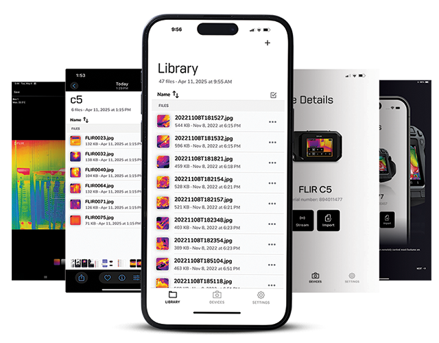 The FLIR Tools® Mobile app lets you stream live video to your mobile device from most FLIR thermal cameras with Wi-Fi capability (excl. C3 and Ex-Series), allowing you to monitor from a safe distance and show others what the camera is seeing as it happens. Use the app to incorporate images into reports to send to customers and co-workers. The app allows you to import stored images wirelessly, thermally tune level and span, change color palette, adjust parameters, and much more.