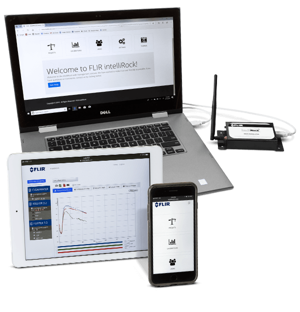 View real–time concrete strength and temperature data from a computer or mobile device with FLIR intelliRock III Cloud Software. Send data directly from intelliRock loggers to cloud software via cellular LTE 4G wireless remotes. Set up differential email alerts, create and send reports, see calibration curves, monitor the temperature profile of multiple loggers, and compare surface and internal temperature information by analyzing thermal images.