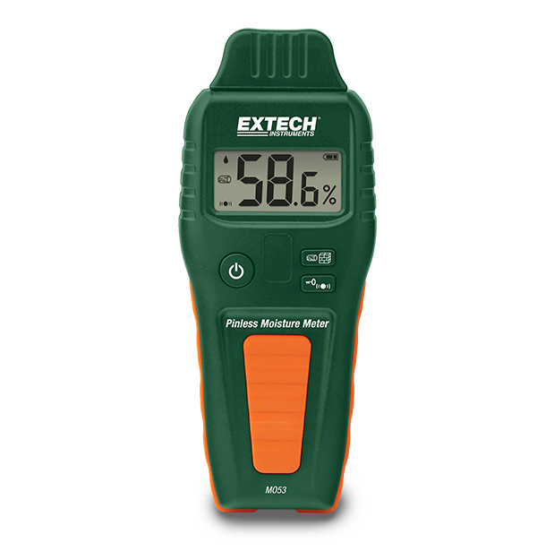 使用 Extech 的 MO53 无探针式湿度计,可对木材和其他建筑材料进行非侵入式测量,几乎不会对表面造成损伤。测量深度约为 20 毫米。该产品易于操作,通过图标显示表明水分含量水平,带声音警报功能。MO53 是建筑修复项目和应用的理想选择,在这类项目和应用中对地板和瓷砖上的水分检测以及地毯下的水分检测至关重要。该产品是用于分析墙壁和天花板漏水后果的必备工具。