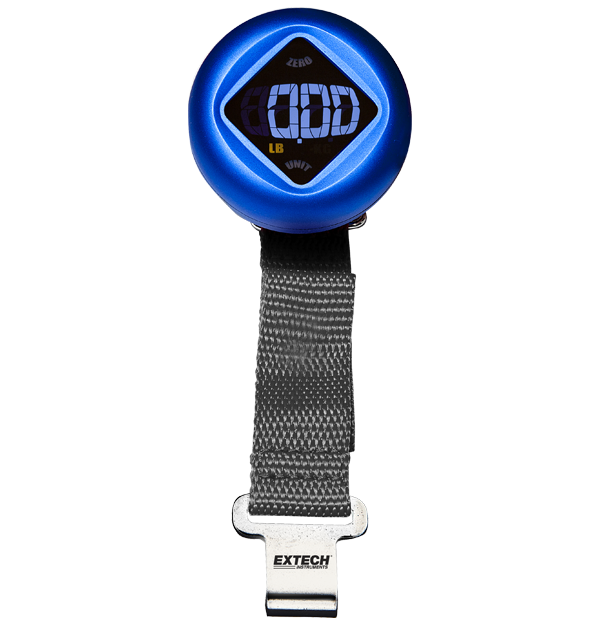 The Extech SC50 is a Handheld Digital Scale. It is battery operated with a webbing belt and a hook that attaches to luggage handles. Complete with a CR2032 battery, 238 mm (9.4 in) strap, and a touch screen.