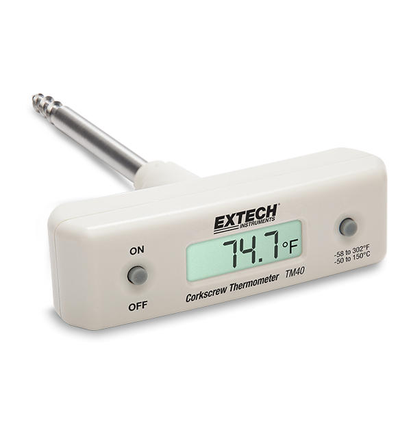 Featuring a T-shaped design that provides a solid grip, the Extech TM40 Corkscrew Stem Thermometer enables users to twist the 101 mm (4 in) stainless steel probe into various solid or semi-solid materials to capture accurate temperature measurements. Complete with SR44 (G13) button battery and protective sheath for probe storage.