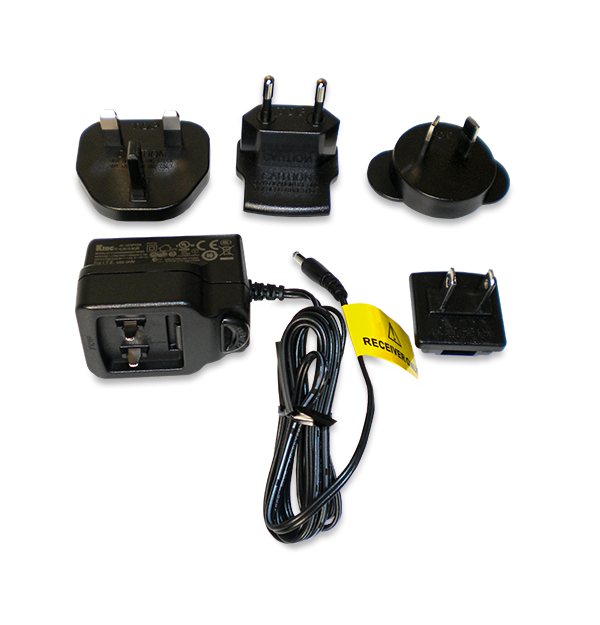 此 100-240 V 通用交流适配器适用于 Extech 的 BR200 和 BR250 内窥镜。UA100-BR 适配器可提供 5 V、1 A 的输出。具有负极中心导体。配有美国、欧盟、英国和澳大利亚转换插头。